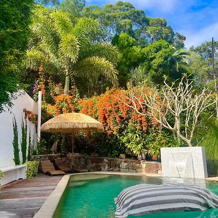 Luxe Tropical Oasis, Magnesium Pool, 4Bed Villa Noosa Heads med 2 sovrum, som ligger inom 10 minuters bilresa från Nationalparken Noosa, har en privat pool som garanterar en avkopplande vistelse.